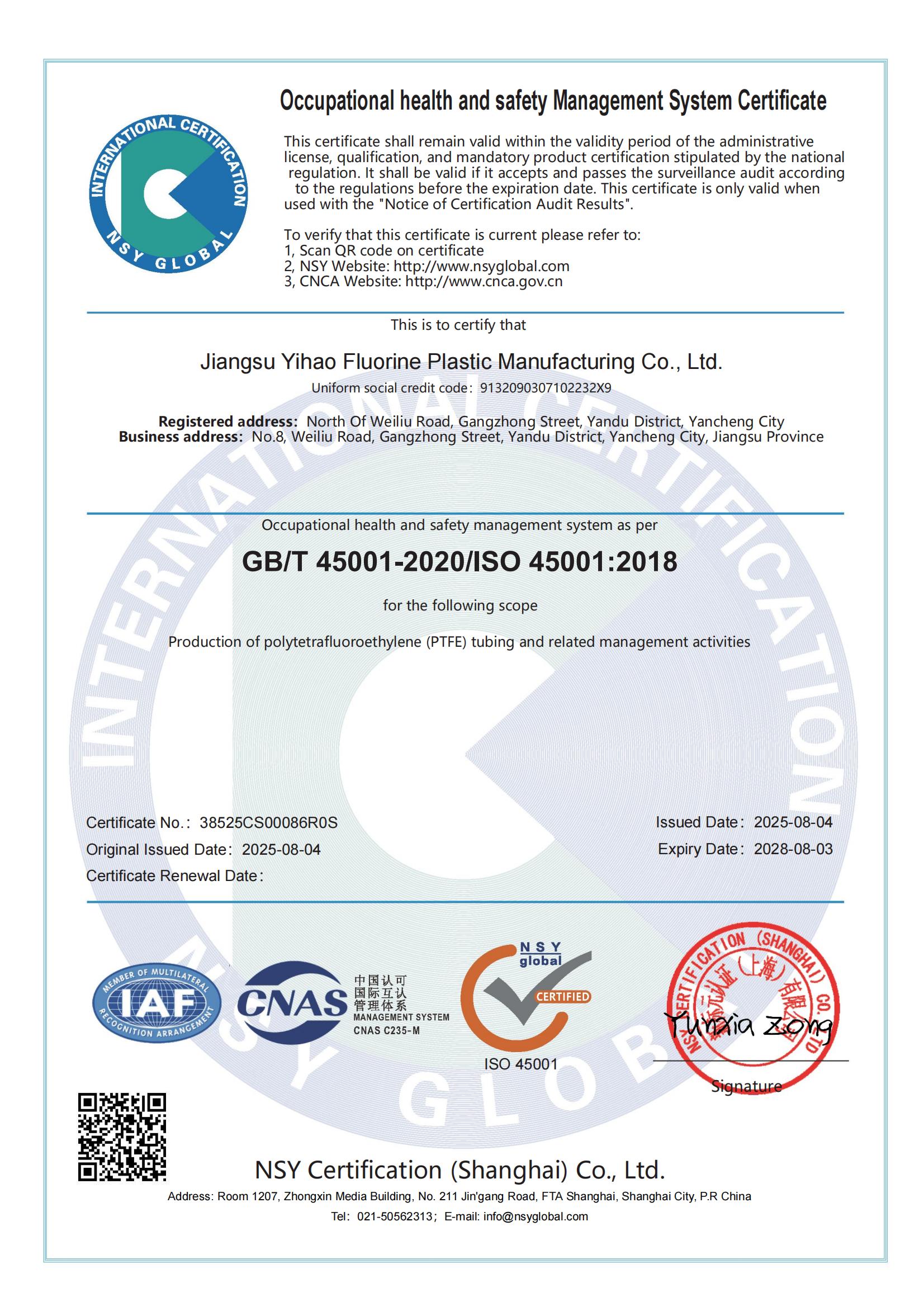 职业健康管理体系认证